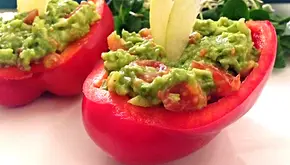 Poivrons farcis : Avocat, pomme, tomates cerises
